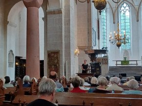 Na de prachtige muziek van Paradis en de introductie van de nieuwe projectcoördinator, heeft de huismeester van de Pieterskerk, Katrijn Kuypers uitgebreid over de ontstaansgeschiedenis van de Pieterskerk verteld. De laatste grote restauratie vond plaats in de jaren ’60, en het is nu, 975 jaar na de inwijding van de kerk, een mooi moment om de stand van zaken van het meest recente onderzoek te bundelen. Onder redactie van Kaj van Vliet, rijksarchivaris van het Utrecht Archief, komt in september een nieuw boek uit ‘de Utrechtse Pieterskerk’, uitgegeven door Uitgeverij Matrijs.
